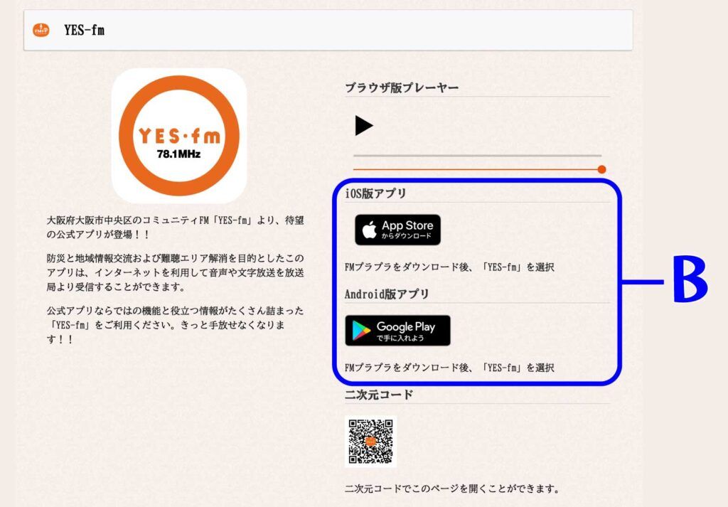 2. 画面上のアプリストアボタン(B)より、[FMプラプラ]をインストールしますします。