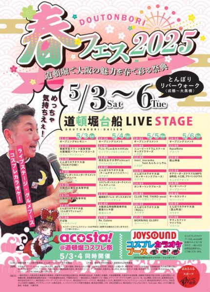 2025年5月3~6日、とんぼりリバーウォーク(道頓堀橋〜新戎橋)にて道頓堀春フェス2025が開催されました!
