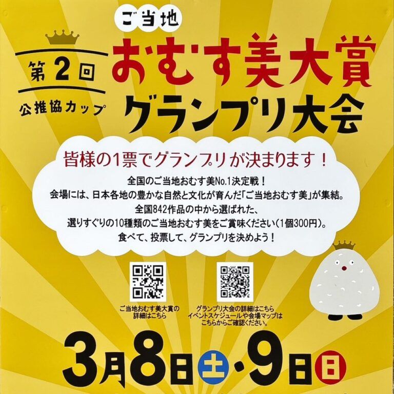 2025年3月8~9日、なんば広場で「第2回ご当地おむす美大賞グランプリ大会」が開催されました! 全国842作品から選ばれた10種のおむすびが集結🍙✨ 来場者の投票で、鹿児島県の「桜島小みかんの元気むす美」がグランプリに! 表彰式には、NHK朝ドラ「おむすび」で祖母役を演じた宮崎美子さんが登場し、会場を沸かせました。 YES-fmはミニFMを活用し、イベント会場全体に音声を届ける音響サポートを行いました。