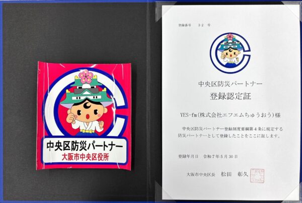 私たちYES-fmは、地震や風水害などの大規模災害が発生した際に、放送機材や情報発信ツールを地域のために活用できるよう、このたび「中央区防災パートナー」に登録しました。